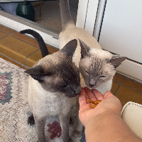 Ich habe mich vor kurzem um einige Siamkatzen gekümmert, ich habe Fotos von ihnen und vorher als ich eine Katze hatte, bestand meine Aufgabe darin, die Katzentoilette zu säubern, sie zu füttern, sie von Zeit zu Zeit zu baden, ihr Haar zu bürsten, mit den Katzen meiner Freunde dasselbe zu tun und auch mit ihnen spazieren zu gehen, ihre Nägel zu schneiden und sie zu verwöhnen.